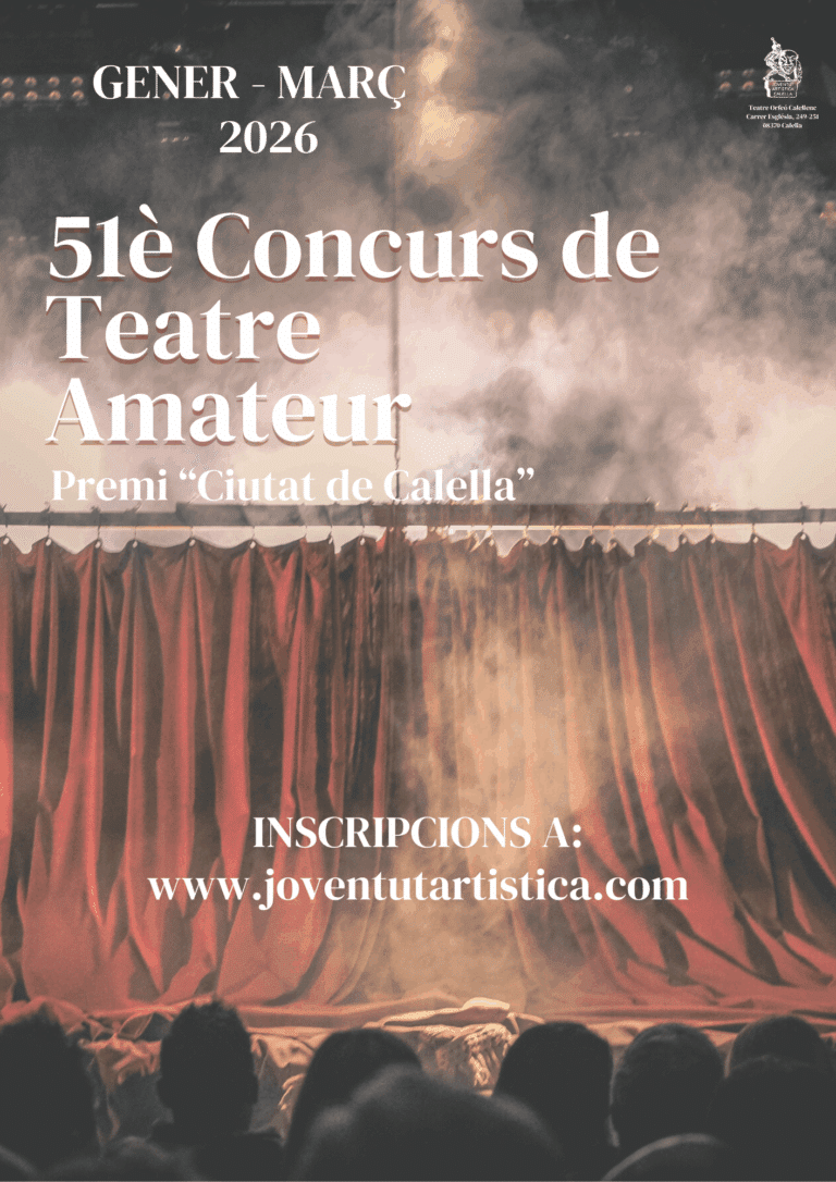 Enguany celebrem la 50ª edició del Concurs de Teatre Amateur “Premi Ciutat de Calella”, que tindrà lloc del diumenge 2 de febrer al diumenge 16 de març, a les 18:00h, al Teatre Orfeó Calellenc.