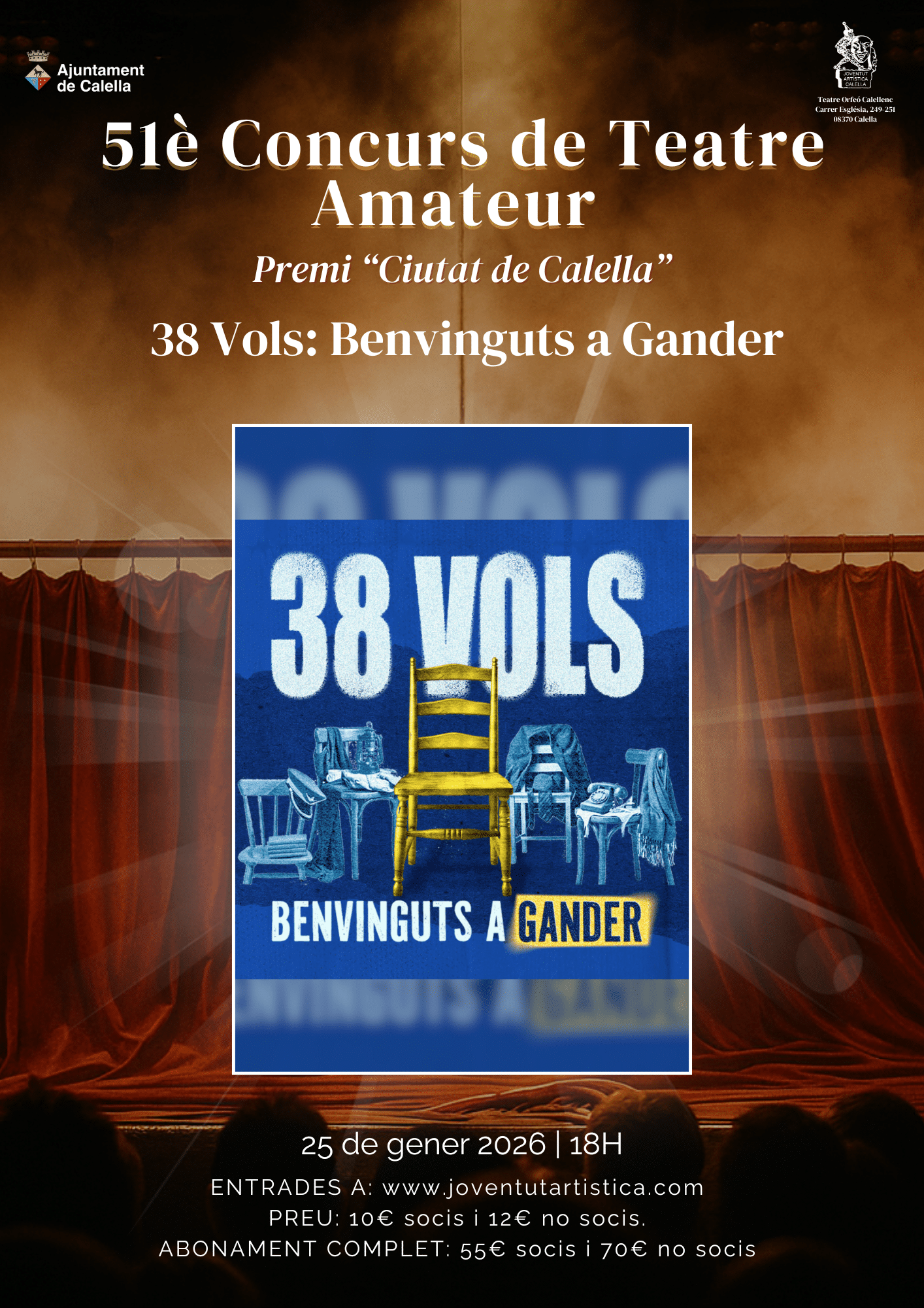 Basada en fets reals, 38 VOLS: BENVINGUTS A GANDER, mostra com els habitants de Gander van obrir els seus cors i les seves llars en un acte de profunda empatia i dedicació davant d’un dels fets més foscos de la història moderna. Un relat profundament humanista, una celebració de la bondat i la solidaritat més pures, que ens recorda el poder de la compassió col·lectiva. Amb una composició musical delicada i una combinació curosa entre emoció i humor, l’obra és una carta d’amor a la humanitat que destaca com en els moments més foscos poden sorgir actes d’altruisme que il·luminen el millor de les persones. Una història de connexions inesperades i un recordatori que, encara que puguem venir de llocs i cultures diferents, tots compartim la mateixa necessitat de cura i comprensió.
