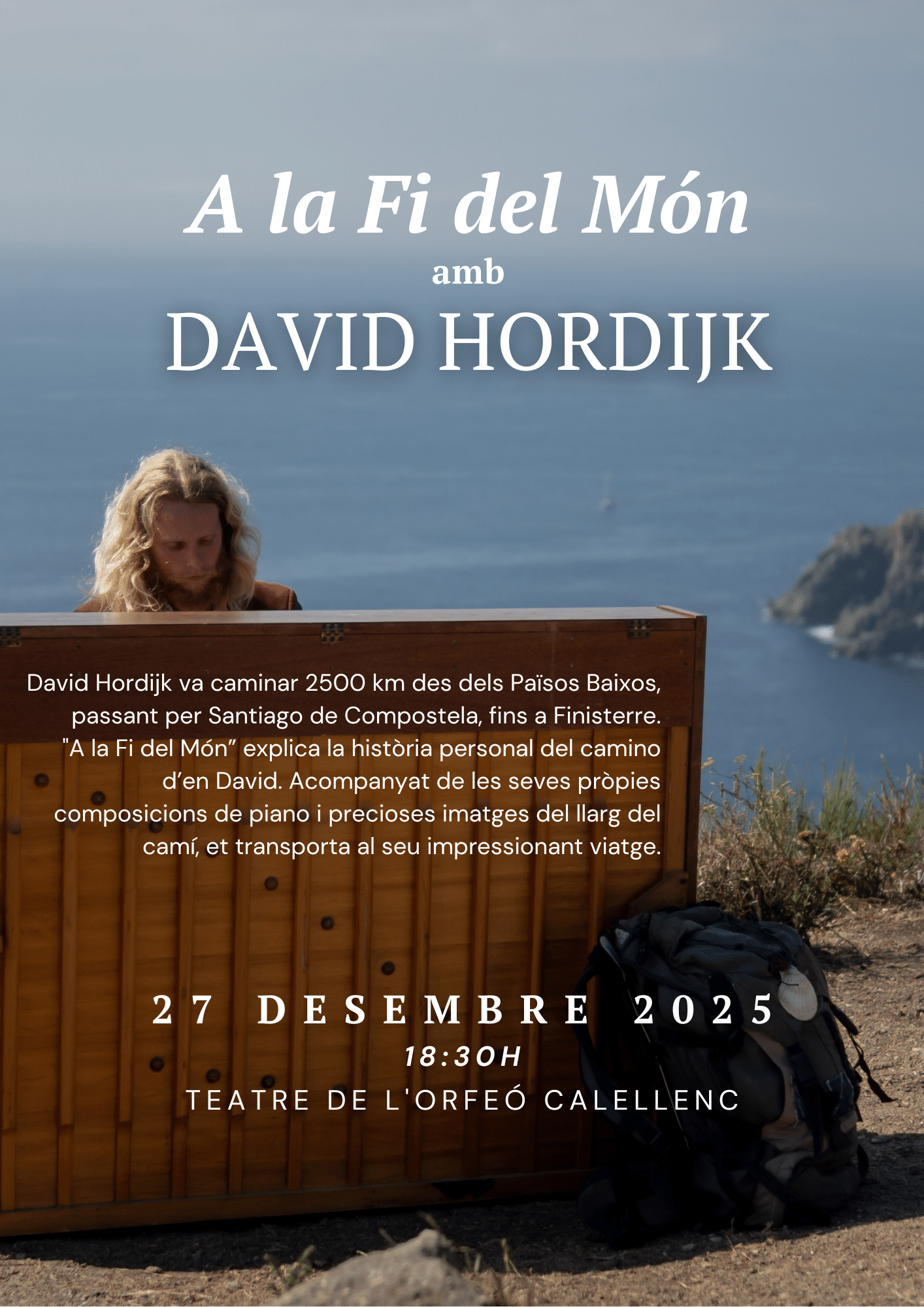 “A la Fi del Món” explica la història personal del camino d’en David. Acompanyat de les seves pròpies composicions de piano i precioses imatges del llarg del camí, et transporta al seu impressionant viatge.