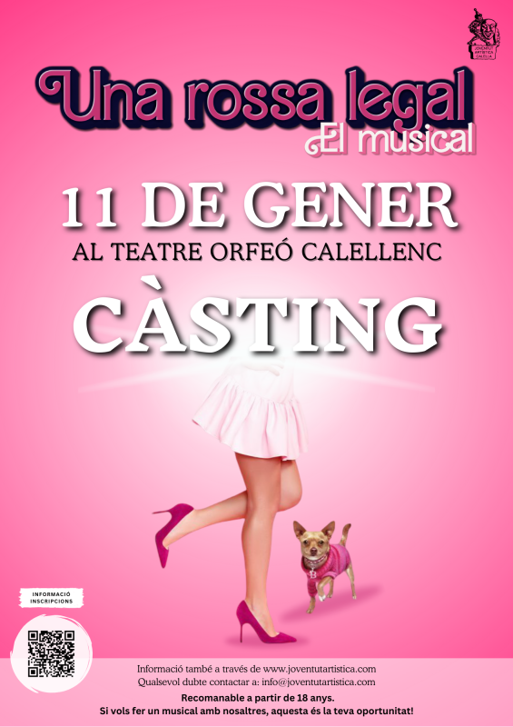 El proper 11 de gener de 2026 tindrà lloc el càsting pel musical “Una Rossa legal” al Teatre Orfeó Calellenc (C/ de l’Església, 249, 251, 08370 Calella, Barcelona).
